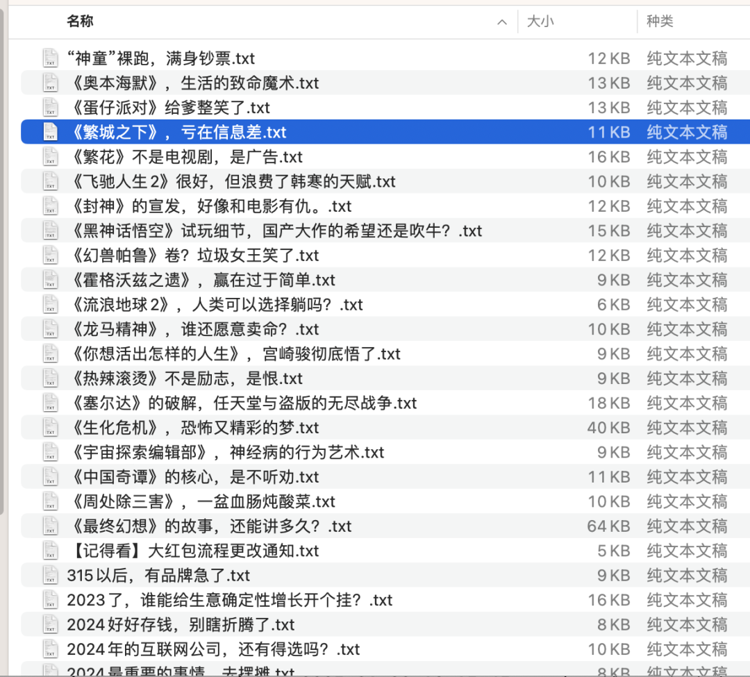 不过AI现在已经很擅长分析文字稿了,所以,我今天把他从2023年1月至今的文章都拿到了一个列表,总共400多篇,粗数了一下,有100万字之多。