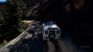 Sora生成的视频图像:一辆老式SUV行驶在盘山公路上 图源:OpenAI官网