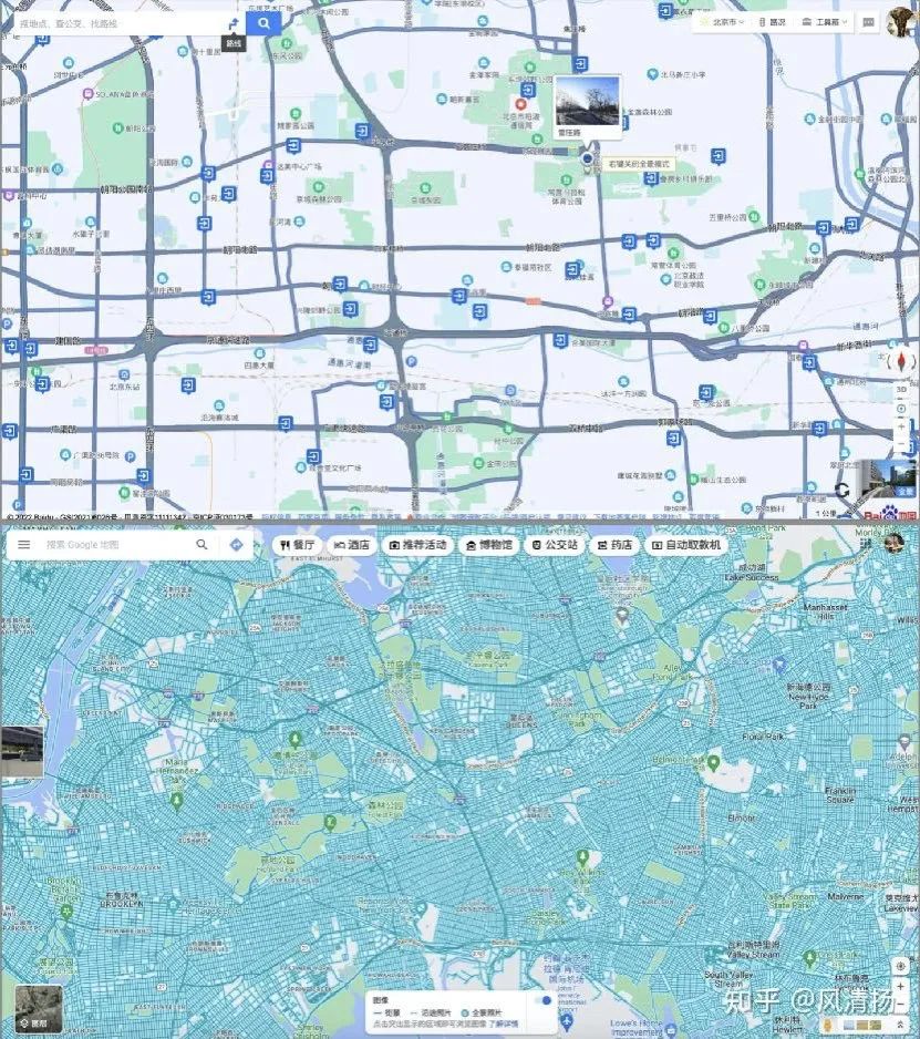 同一比例尺下:北京路网密度对比纽约