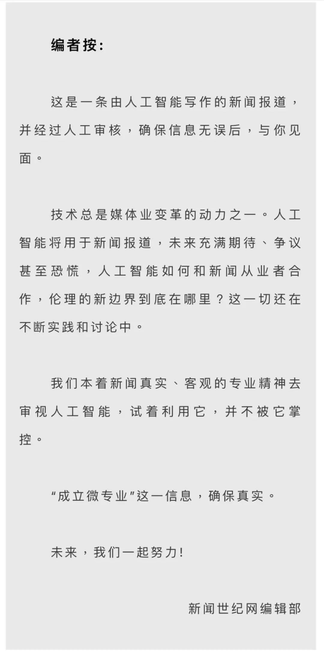 浙江传媒学院人工智能新闻微专业负责人副教授王翎子接受媒体采访时表示:“我们想和学生一起去探索,人工智能究竟给我们的行业带来了怎样的颠覆和改变,我们未来的道路应该怎么走。”
