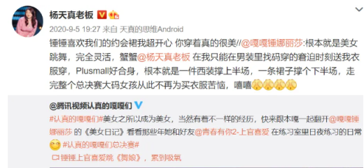 当然,即便“清醒”是人设,也完全不影响杨天真前进的步伐,因为清醒的背后是思路清晰见招拆招的专业,更是知道自己想要什么并且一往无前的决心和毅力。
