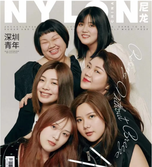 带着她们穿上自家品牌的衣服登上《NYLON》杂志封面。