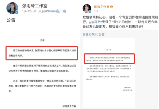 一时间,乔欣、张艺兴、张雨绮、陈数纷纷与杨天真解约。