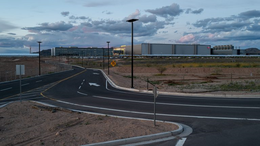 办公大楼旁边是尚未完成的制造设施。这些设施原定于2024年开放,外形类似于巨大的体育场。一旦完成,整个综合体将覆盖1,100英亩,相当于625个足球场。