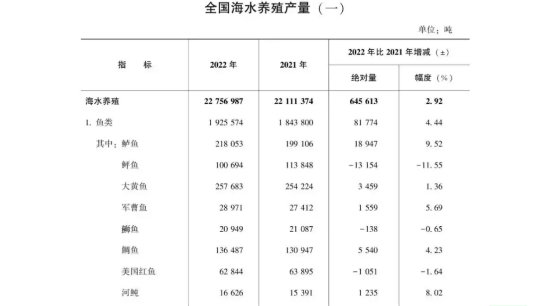 《2023中国渔业统计年鉴》显示,2022年中国海水养殖河豚产量是16626吨,比上一年增加了8.02%;淡水养殖的产量是14434吨,比之前一年略低。