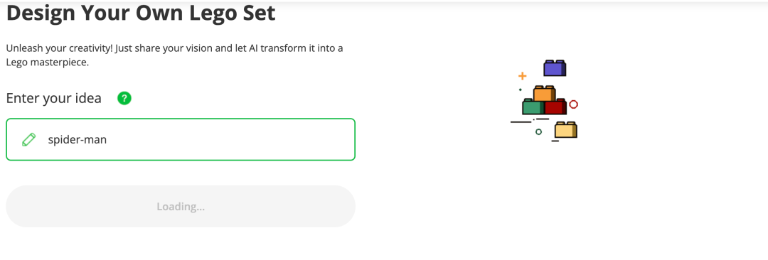 使用方式也很简单,只需要在生成器输入相应的提示词,比如“Spider-Man”,就能得到相应的乐高设计图: