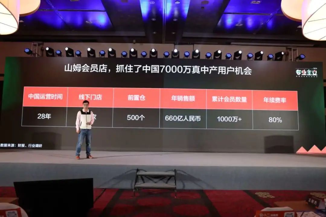 山姆是最好的典型案例,大概46家门店,500个前置仓,销售收入660亿元,累计1000万会员,年续费率80%。我不需要做所有群体,我的选品和服务,针对7000万就可以了。山姆很多店一开就爆。很多人想做所有的生意,但其实只能做一部分的生意,你的产品服务只能对应一部分,不能对应所有消费者。