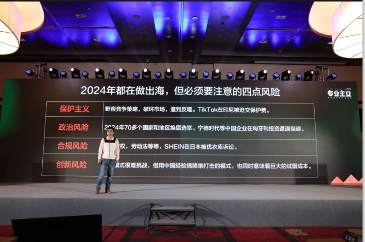 24年都在做出海,要注意风险,贸易保护政策、政治风险、合规风险、还有创新风险。像TikTok在印尼交了5亿美金保护费,2024年地缘政治肯定还是有的。