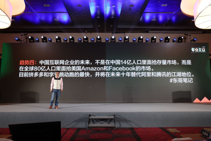 趋势四,中国互联网企业的未来,不是在中国14亿人口里面抢存量市场,而是在全球80亿人口里面抢美国亚马逊和Facebook的市场。拼多多有很大的机会,主要是亚马逊美国的公司只做欧美发达市场,没有做穷人买卖,空白市场太多了。抛开拼多多具体运营打法没问题。还有腾讯和字节跳动在海外做的很好。我们在过去十几年前讲BAT,后面十年讲阿里系、腾讯系,再过几年讲的可能是字节系、拼多多系。在全球市场抢生意的公司,未来十年将替代阿里和腾讯的江湖地位。