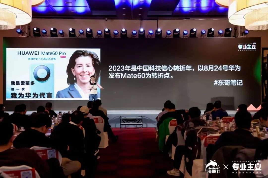 为什么是转折点?这取决于企业和产业。无论是军事、文化还是经济,最终还是回归到产业竞争。23年是中国科技信心的转折年,以8月24日华为发布mate60为转折点,至少过去5个月没有人再焦虑半导体。之前大家还焦虑说华为完蛋了,中国半导体产业链完蛋了。不要说搞定5纳米、7纳米,未来10年,14纳米芯片都搞不定,甚至5G产业链都崩溃掉了。我理解23年是中国科技信心的转折年。
