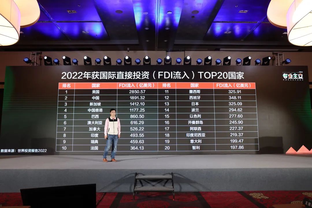 前面讲到,2023年中国获国际直接投资(FDI流入)1880亿美元,基本跟2022年持平。尽管美元基金对消费的投资变得很少,但其他一些行业的投资还是增长的。