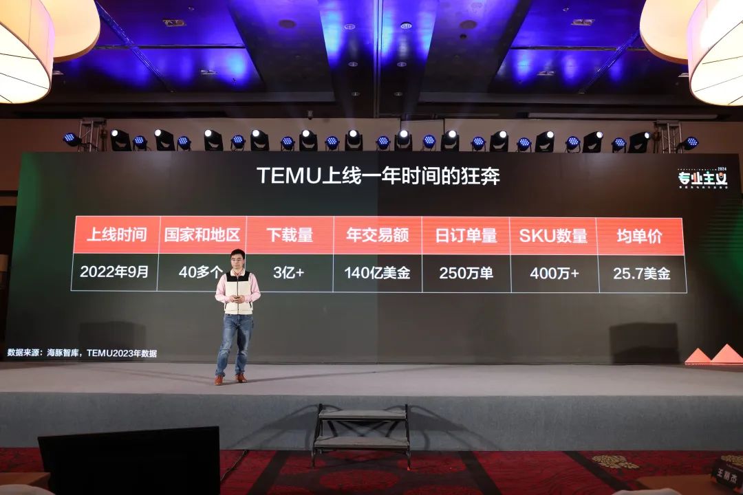 第二个看一年的数据,它从22年9月份上线,到现在一年两个月时间。已经在40多个国家上线,下载量3亿+,年交易额140亿美金,日订单量250万单,SKU数量400万,均单价25.7美金。