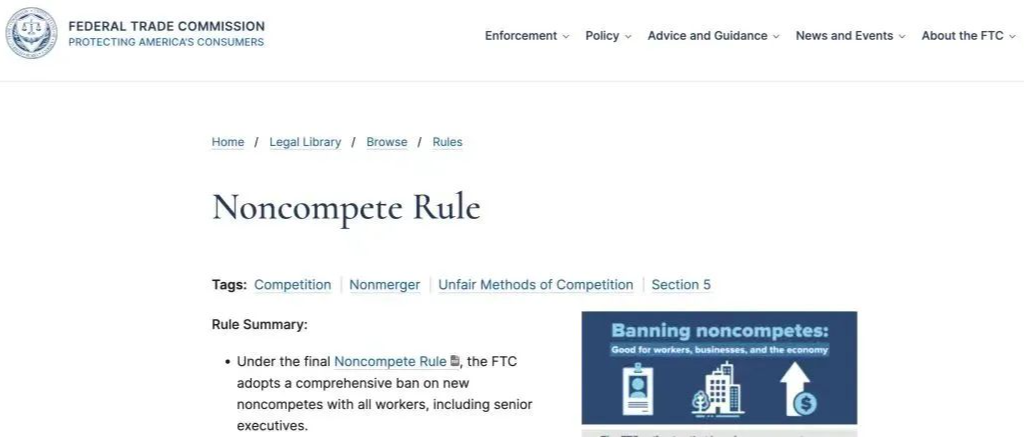 4月23日,美国联邦贸易委员会(FTC)宣布,在全国范围内,将全面禁止所有员工(包括高级管理人员)签署新的竞业禁止协议。