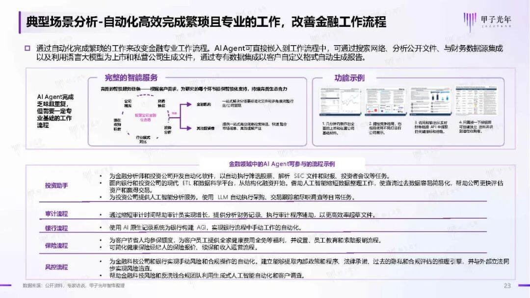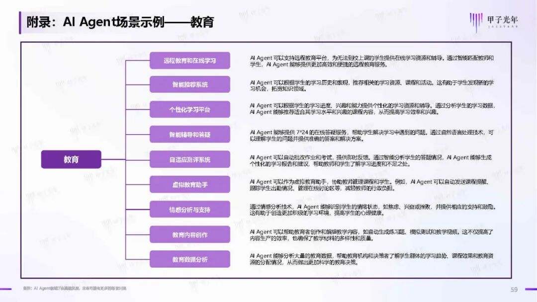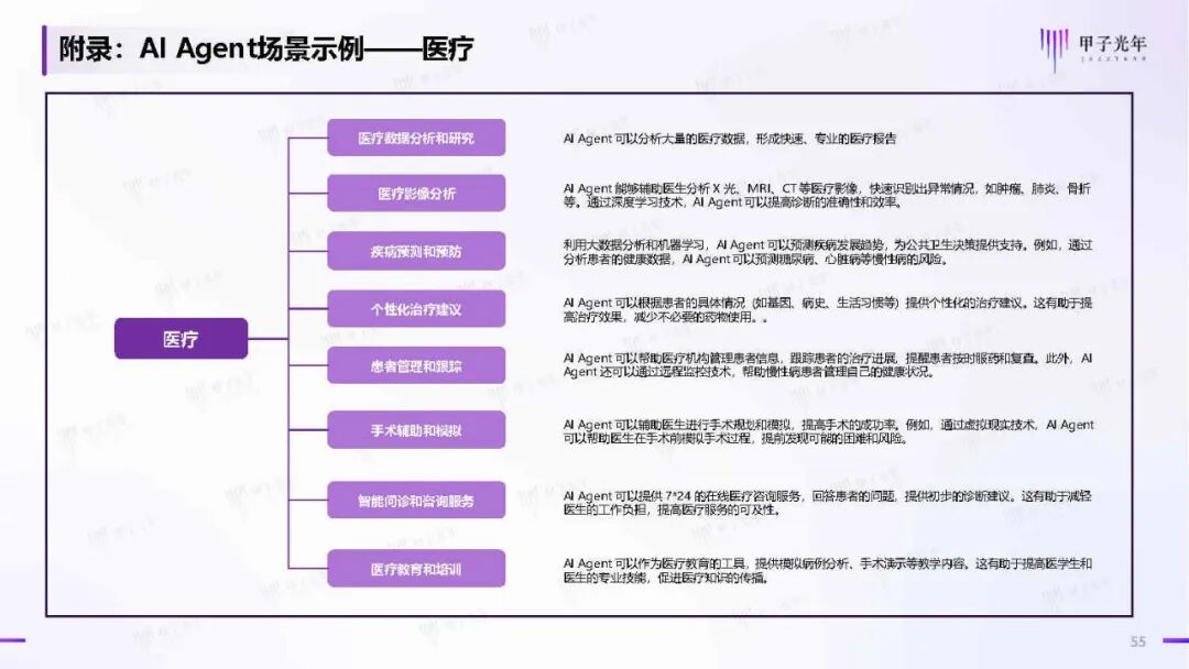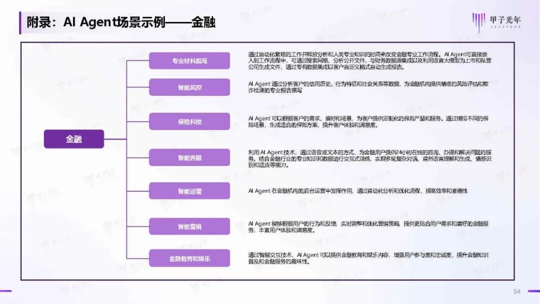AI Agent在不同行业的应用场景正在不断拓展。在金融领域,AI Agent能够进行风险管理、客户服务和专业材料撰写;在医疗行业,它们辅助影像分析、疾病预测和个性化治疗;在教育领域,能提供个性化学习平台和智能辅导。这些应用展示了AI Agent在提升行业效率、改善服务质量方面的广阔前景。