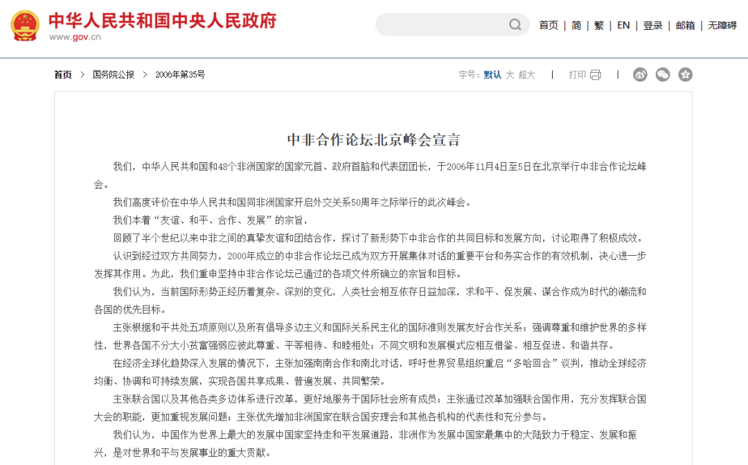 2006年11月,汇聚了53个国家,48位元首的中非合作论坛北京峰会召开。那是中非合作论坛成立以来,中非外交史上规模最大、级别最高、与会非洲国家领导人最多的一次盛会,是中非关系发展史上的里程碑。