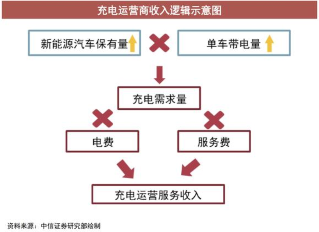 需要介绍的是,新能源车主充电的费用主要分为两项,一是直接缴纳给电网的电费,二是给充电站的服务费。其中,服务费是充电运营商的主要营收收入。