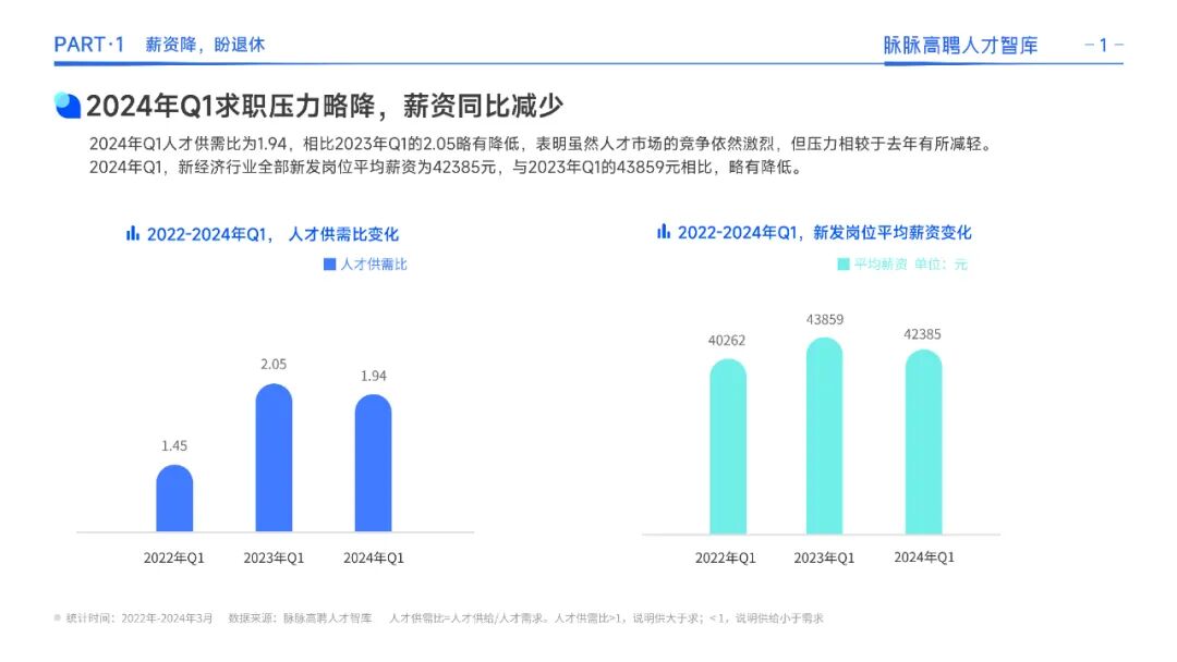 报告里说,2024年Q1的人才供需比是1.94,比去年的2.05要低,这是不是意味着工作机会变多了?