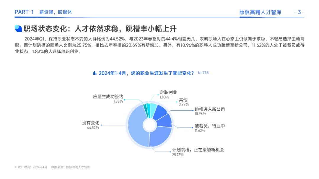 《2024春招高薪职业和人才洞察》报告展示了当下职场生活的一个缩影。薪资的增减、退休的规划,这些都是我们必须要面对的现实问题。在这个充满变数的职场中,我们得学会审时度势,不断提升自己,才能在这场没有硝烟的战争中站稳脚跟。
