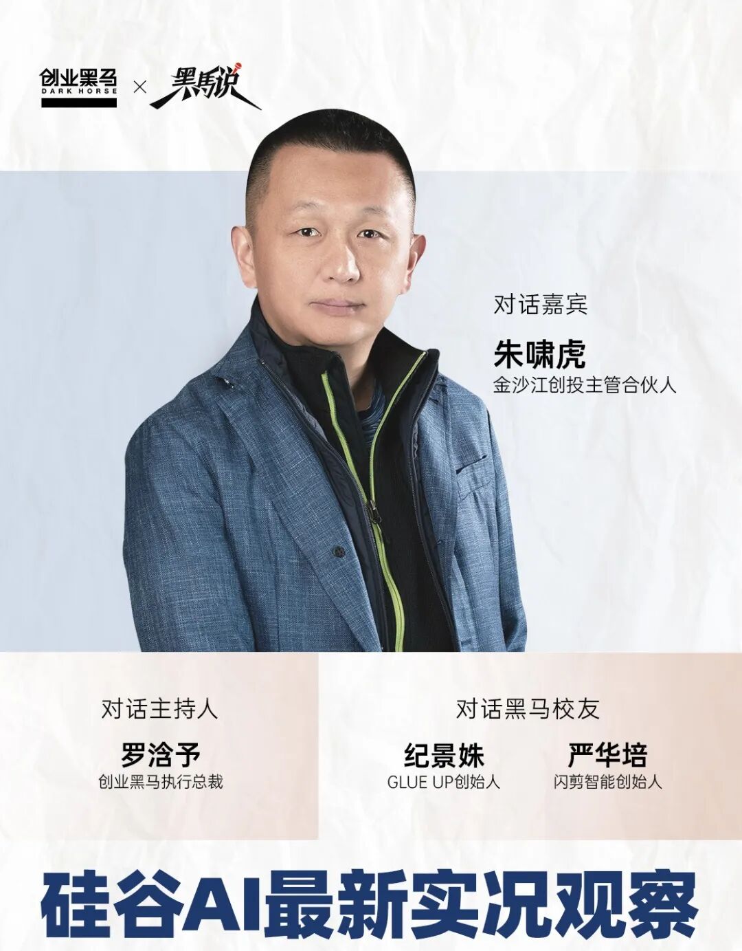 近日,“黑马营对话破局者系列直播”第3场在创业黑马执行总裁罗浛予的主持下,深度对话了黑马导师、金沙江创投主管合伙人朱啸虎导师,以及黑马校友代表Glue up创始人纪景姝和闪剪智能创始人严华培。嘉宾们一起分享在硅谷的所见所闻,解读AI领域的最新技术动态和产业趋势。