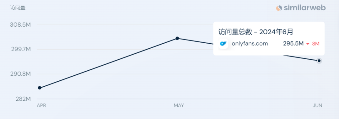 ▲OnlyFans网站5、6月的浏览量较4月大幅上升,数据来源:similarweb