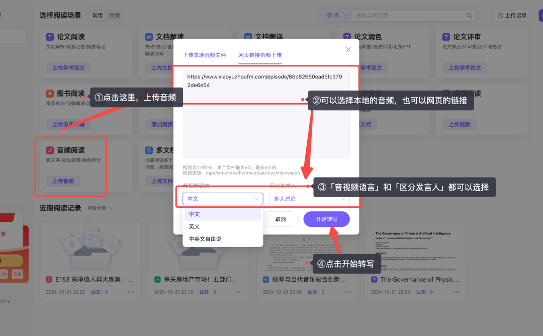 | 会议和研讨会 | 实时记录:在大型会议或研讨会中,参与者可以录音后上传,AI生成详细的会议纪要和重点摘要,方便事后查阅和分享。