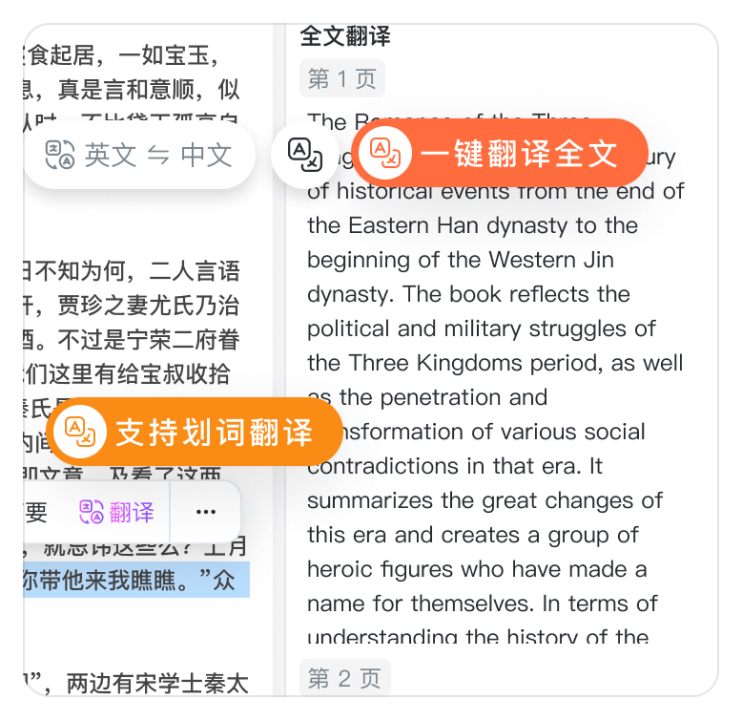 多语言翻译:支持多种语言的即时翻译,方便用户进行跨语言阅读和理解,打破语言障碍。