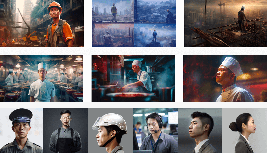 1.快速通过关键词锁定需要的人物特征、姿态、表情、风格(例如写实、严肃、侧脸、沧桑、厨师、普工、美发师)。