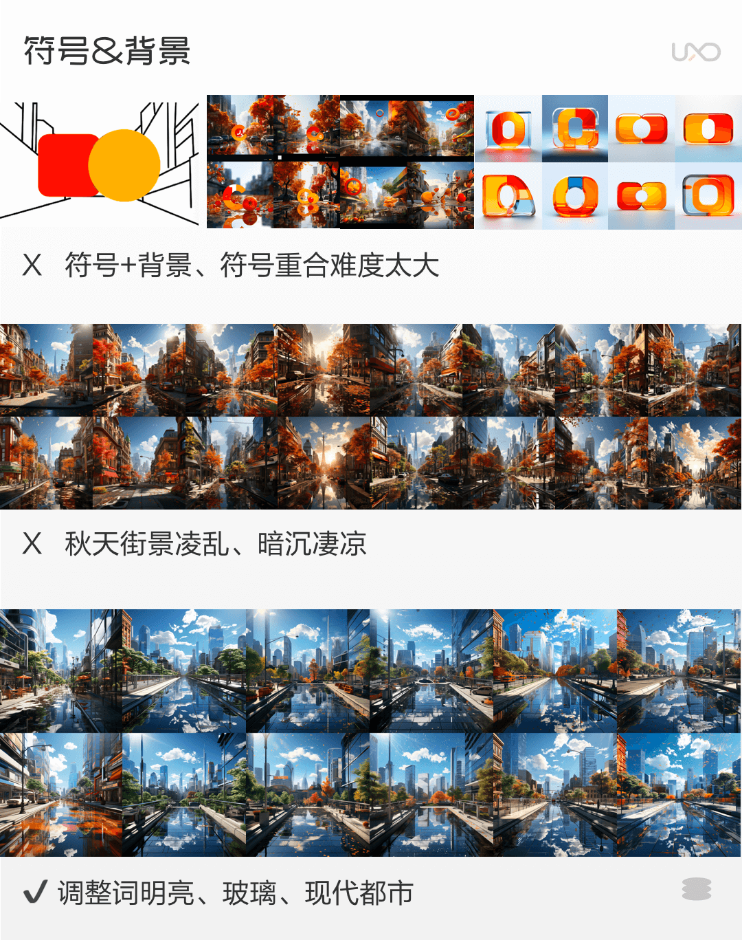 首先生成背景层,都市背景,秋季场景,这里生成的秋天图都比较暗沉、凄凉、凌乱,落叶比较多,因此选用了一张比较明亮的视野宽、干净现代的都市场景,后期用ps将树木调成了秋天的颜色。