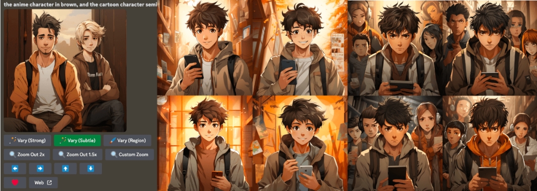 因 Midjourney 可控性弱,要在不同场景里,统一主角着装、发型,那么就需要基于一张比较满意的图像,进行微调,来解决一致性难点。