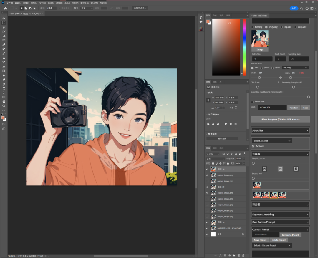 在PS+SD充分结合后,配合controlnet控图,还有更多的可能性可开发。比如SEG控图和tile增加细节。期待更加高效的AI工作流带来更多的惊喜。