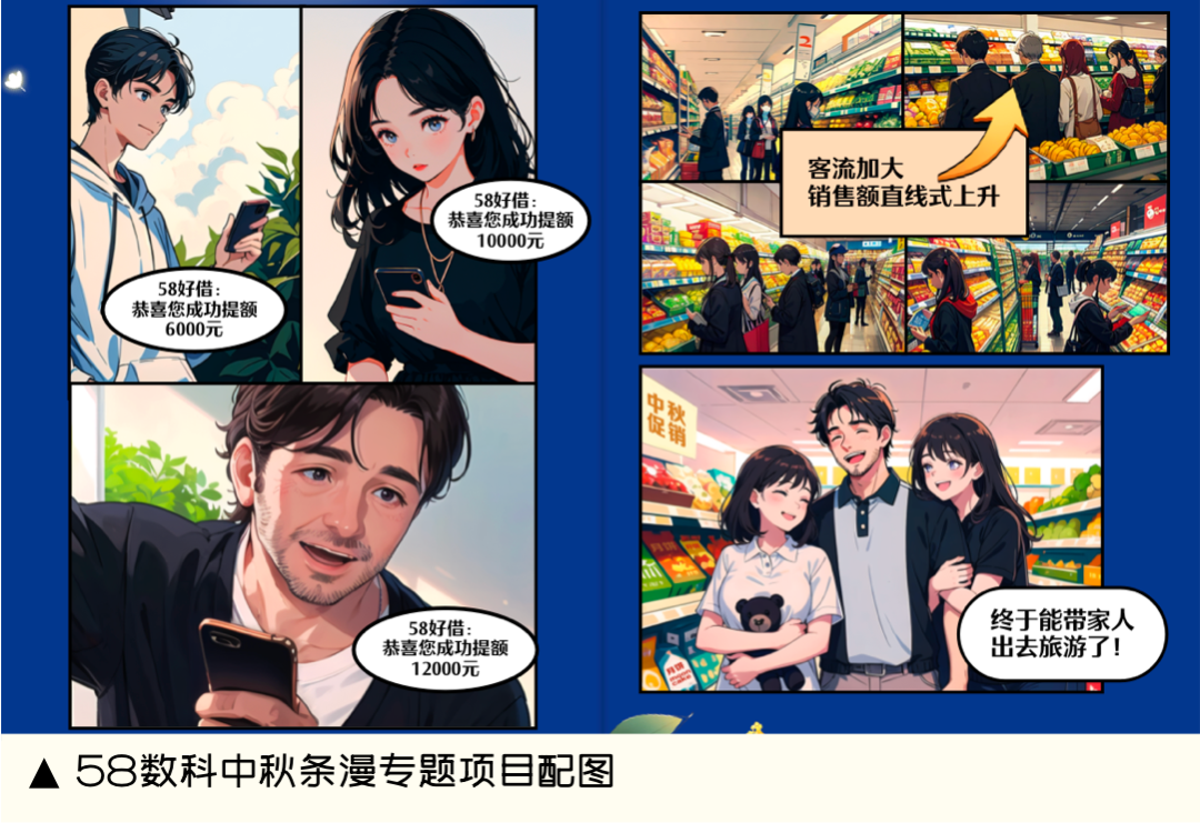 58数科公众号上在中秋国庆前需要发布一篇用户故事条漫,借用其中的一张图来做说明。