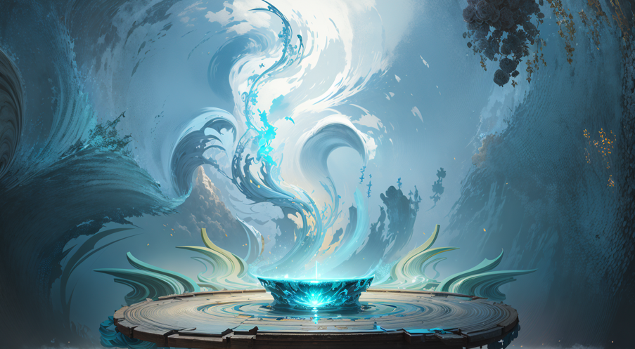 (世界杰作影院,高清,极品,超细腻,官方艺术,小说插画,8k 壁纸,概念艺术,中国风,玉石圆底,金属环,青玉雕刻,花纹,高精度纹理,台阶,玉石,木纹,大理石,平底演绎,桌子,背景墙,异形,参考艺术站,波浪结构,礁石,大海,波浪,白色水域,柔和的光线,精细的材料,蓝色和浅绿色的配色方案)