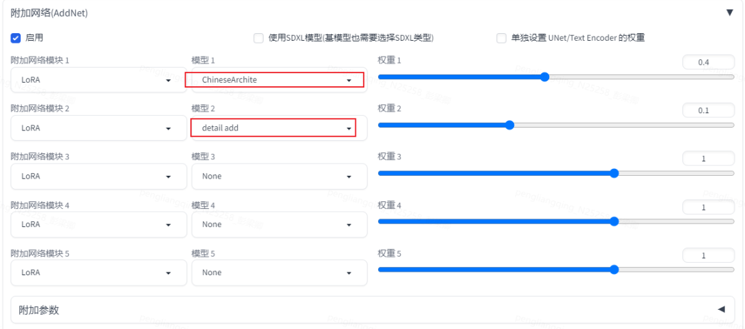 设置Lora(这里选择中式建筑和细节添加)