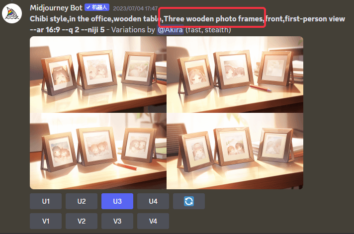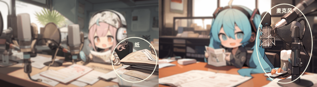 由于midjourney出图结果是随机的,因此我们需要根据画面中所需的不同物品进行生成,包括收音机、麦克风、台灯、纸张、相框等。