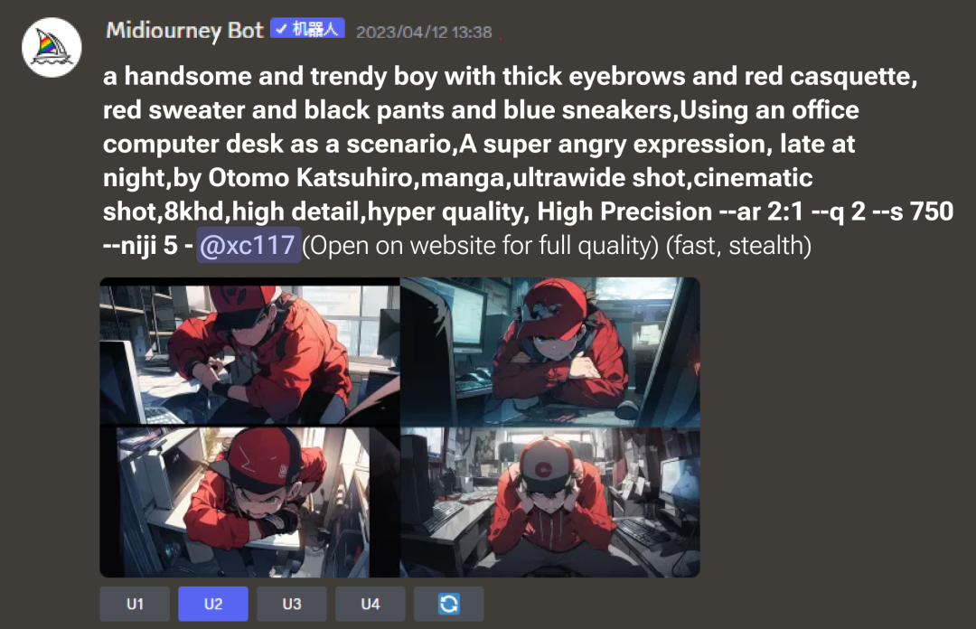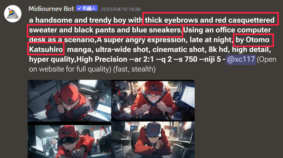 第3步:加上图片的链接与原来的Prompt,重新生成。还可以通过后缀–iw的数值,改变图像比重,大家多尝试尝试。