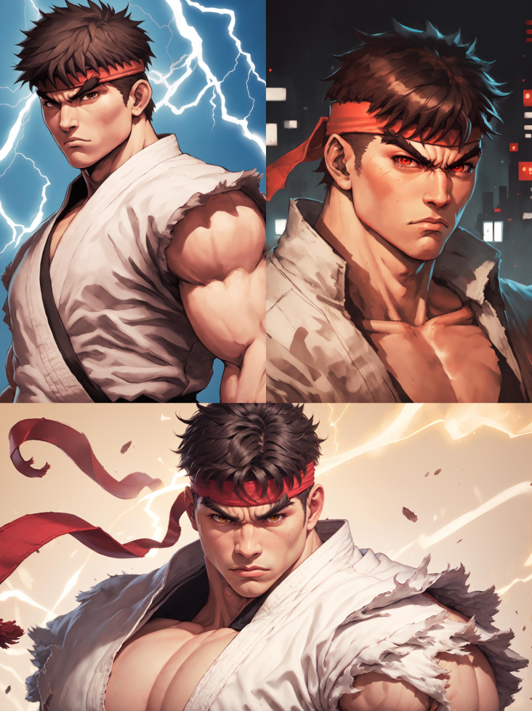 下图是LDWorksDavid大大炼制的的街LoRA,当我们自己炼制自己的角色LoRA的时候也可以达到一样的统一性。