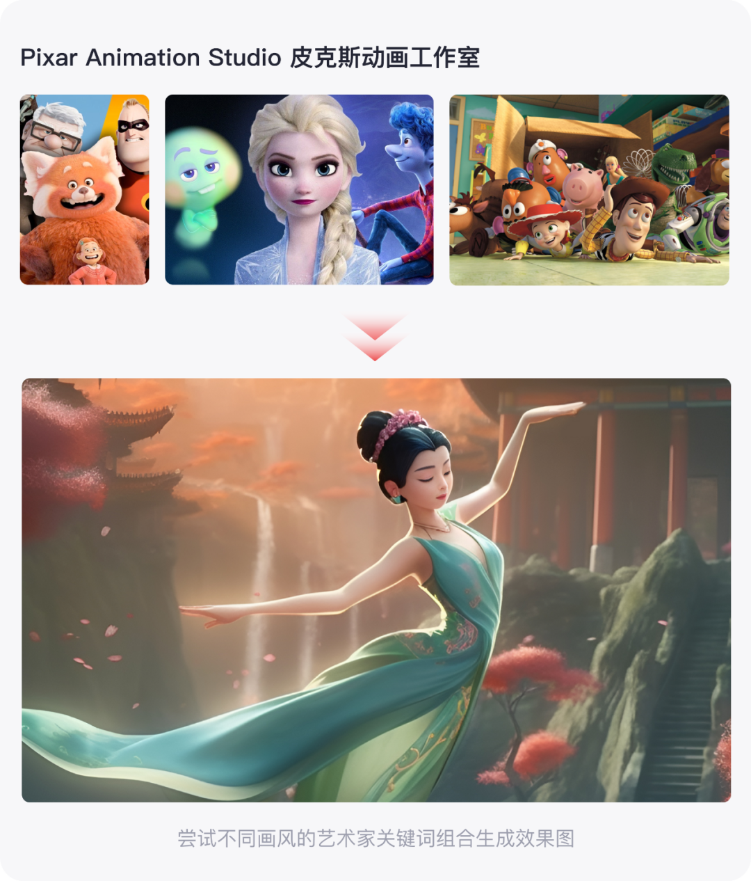 每位艺术家都有自身画风特点以及绘画技巧,AI的优点之处在于能高效提炼艺术家的手法特征进行二次创作,甚至将多名艺术家进行结合。