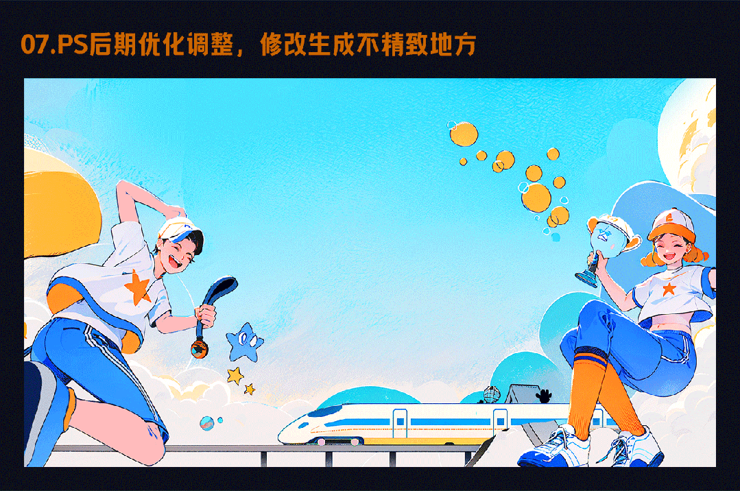 我们将结合生成图片的优缺点进行合成,并对生成结果中不够精准的部分进行调整,最后添加标题文字。