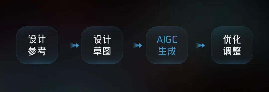 :首先设计师找参考并绘制草图,再通过Stable Diffusion基于草图生成图片,最后选择合适图片优化调整,工作流程如下图所示: