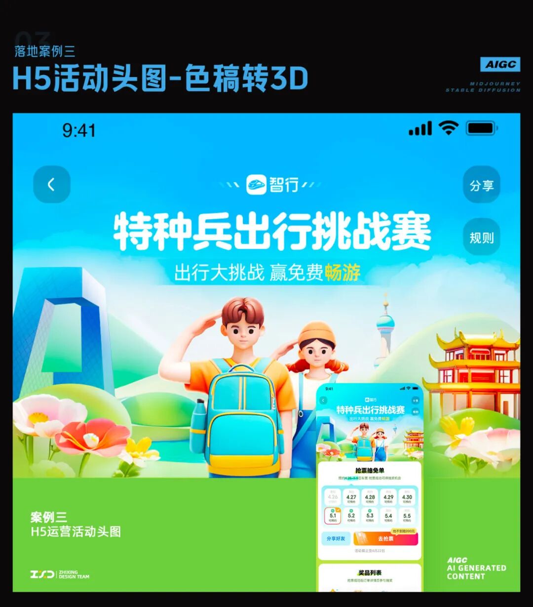 在此背景下,智行ZXD深入研究和探索了AI绘画技术,并尝试出以下可实施落地案例: