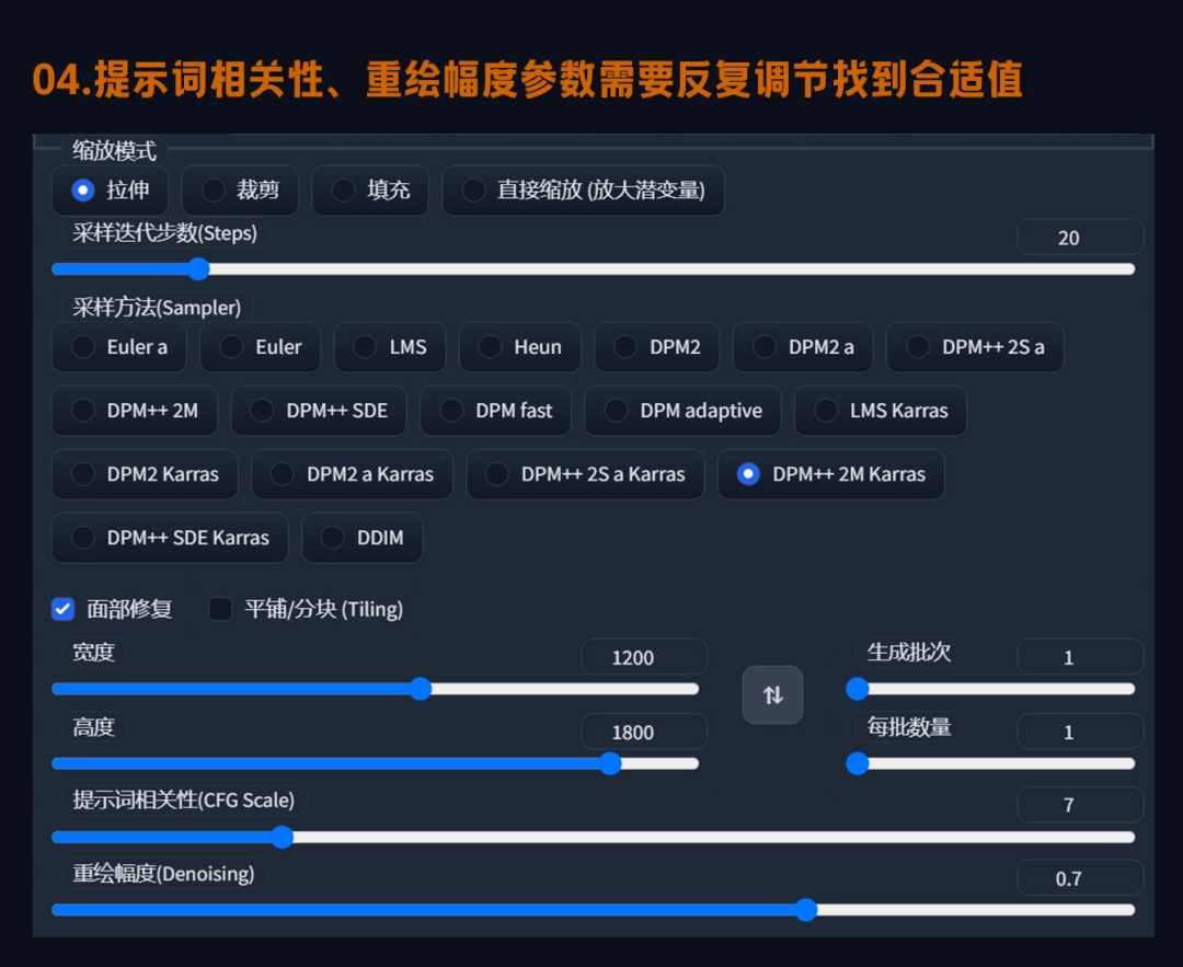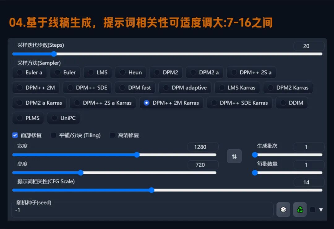 :DPM++ 2M Karras(在速度和质量的平衡最好)