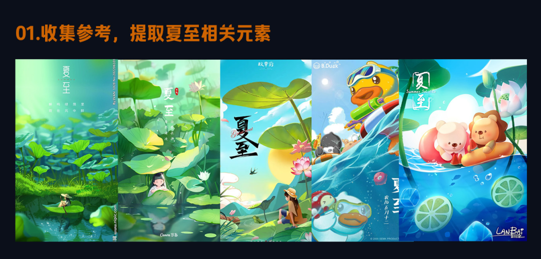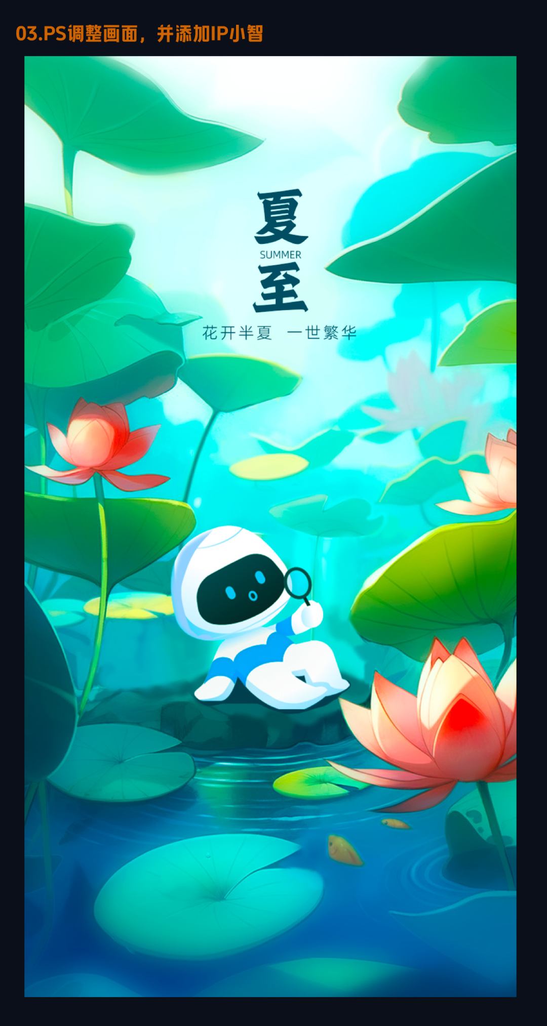 以上三个案例均基于设计师的草图生成,然而,对于那些更注重画面整体氛围,对元素、创意、位置和大小没有过高要求的情况,我们可以尝试使用Midjourney直接生成,以夏至节气海报为例。