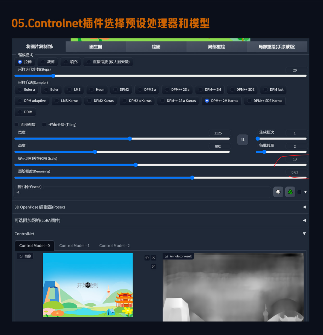 :0.7 (重绘幅度越低,生成图片与底图越接近,反之自由发挥度越高)