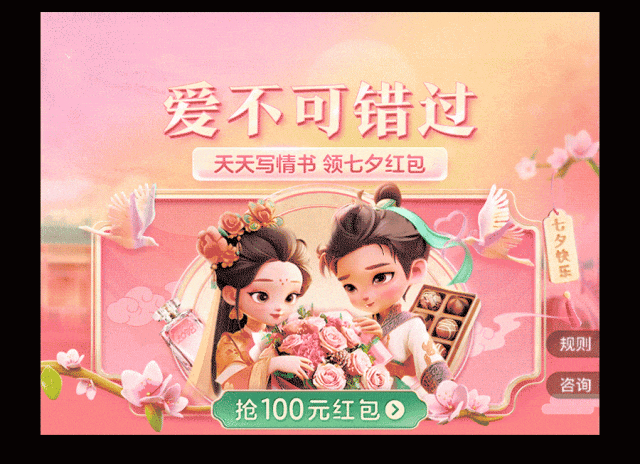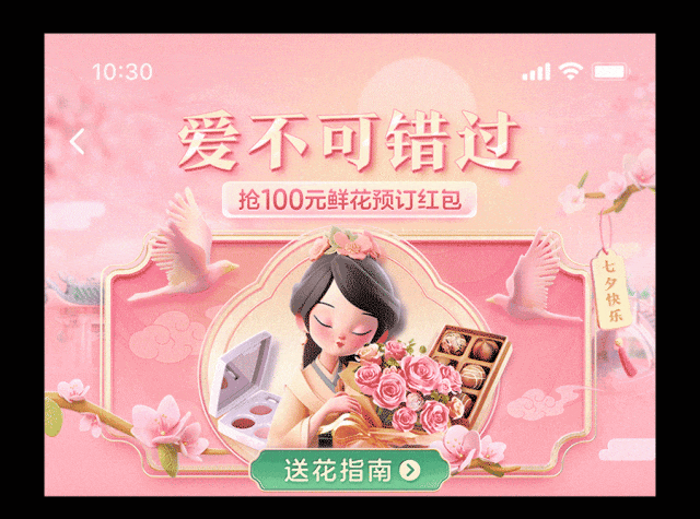 通过动态设计的加持,七夕节「告白礼物」和「爱意传递」两阶段的视觉就正式完成了。