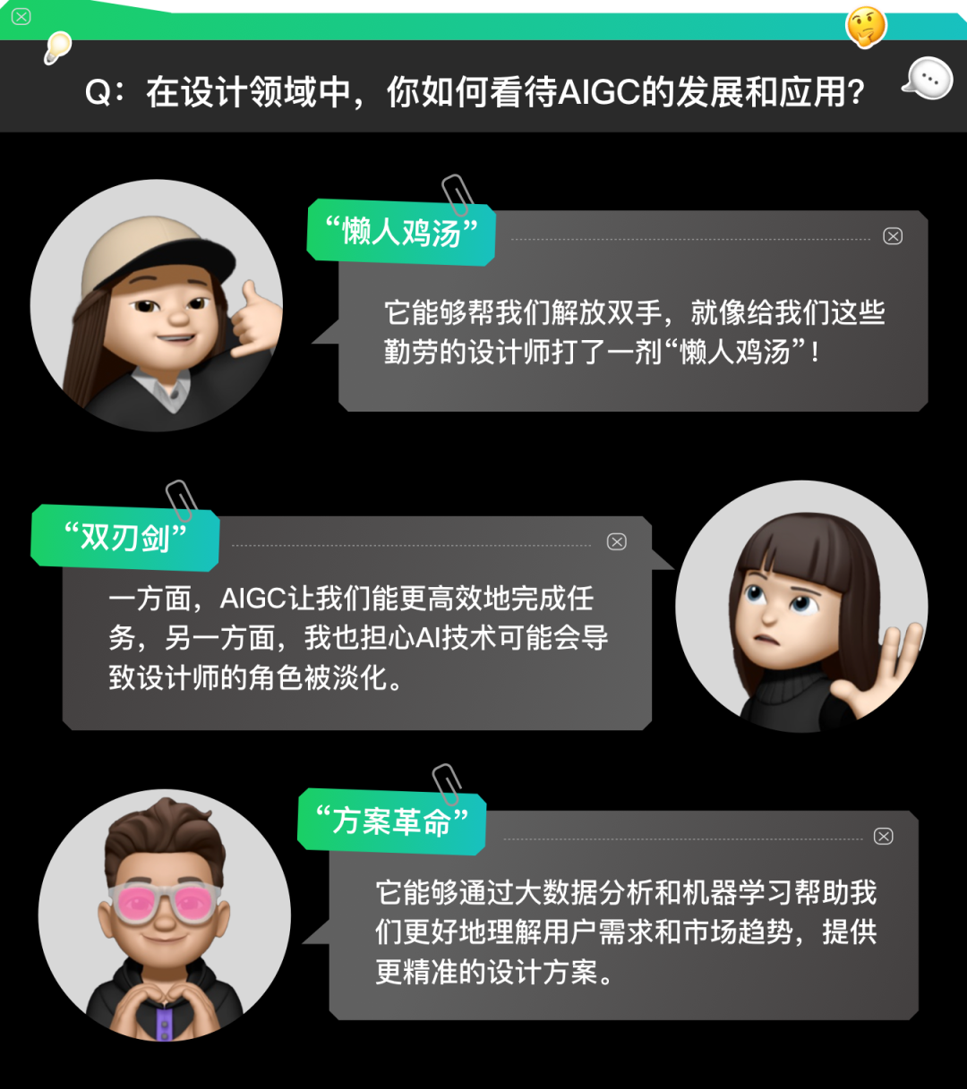 当今数字化时代,AIGC 正以惊人的速度影响着设计行业,在这个背景下,饿了么设计中心的设计师们在去年开始接触 AIGC,并逐步积累了实操及应用经验,以下是我们采访的设计师们对 AIGC 到来的一些看法。