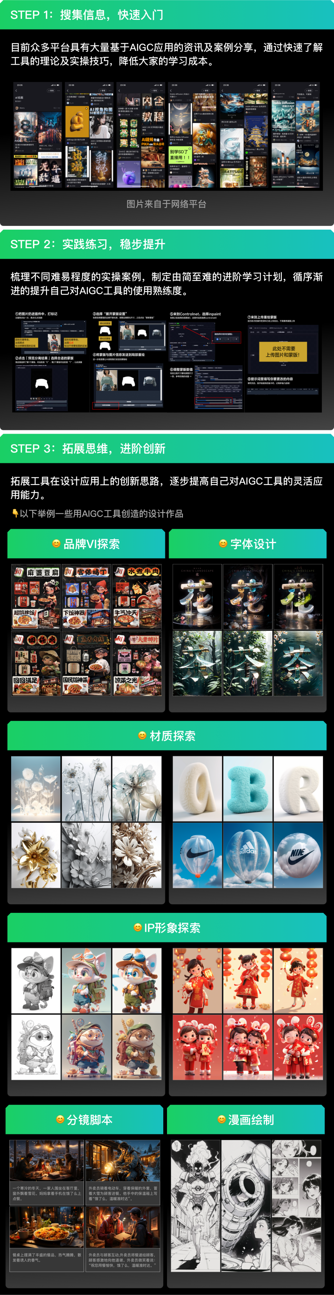 能看出目前 AIGC 在营销应用上还是有很多机会点的,所以现阶段掌握 AIGC 能力是创意设计师们的首要之选,以下是我们提供的一些快速学习 AIGC 的相关思路。