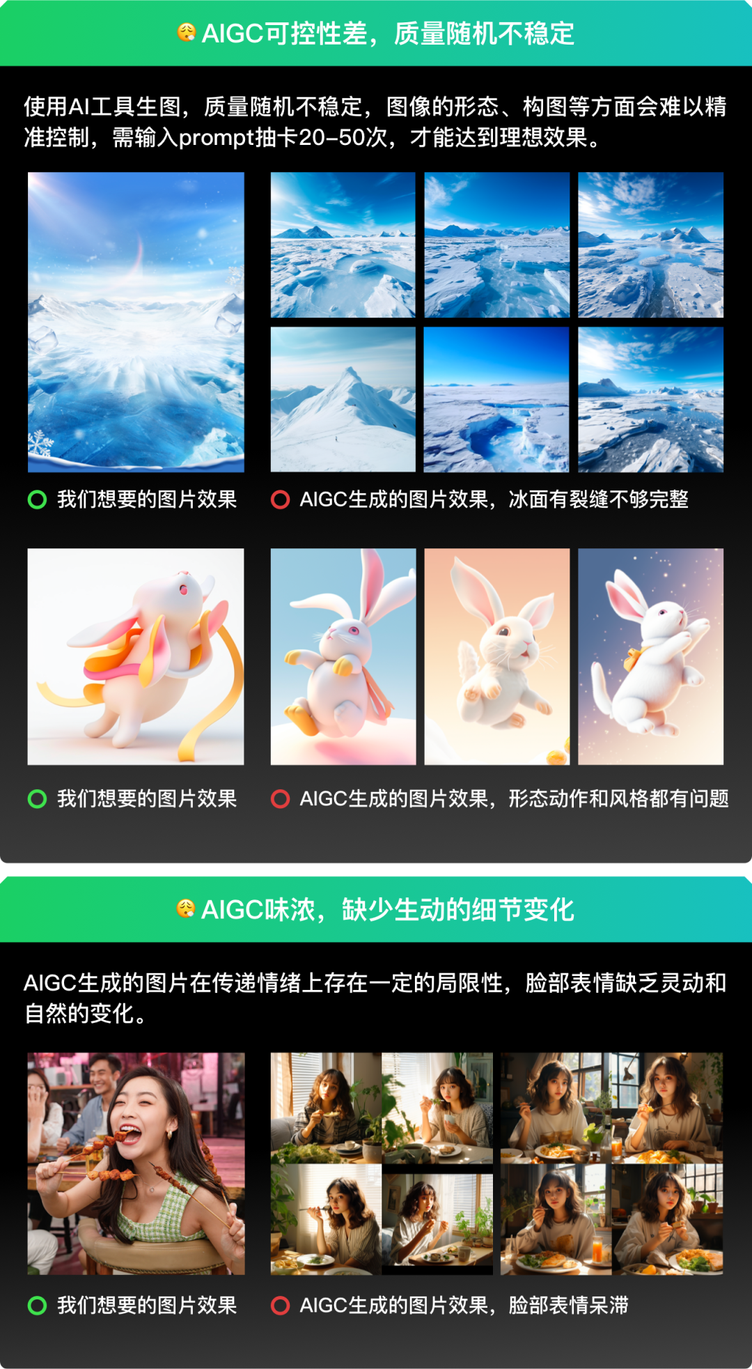 通过多看、多做、多思考,可以不断提升自己对于 AIGC 的掌握能力,但在实际的业务应用当中,我们也发现 AIGC 并没有想象中的那么“美好”。