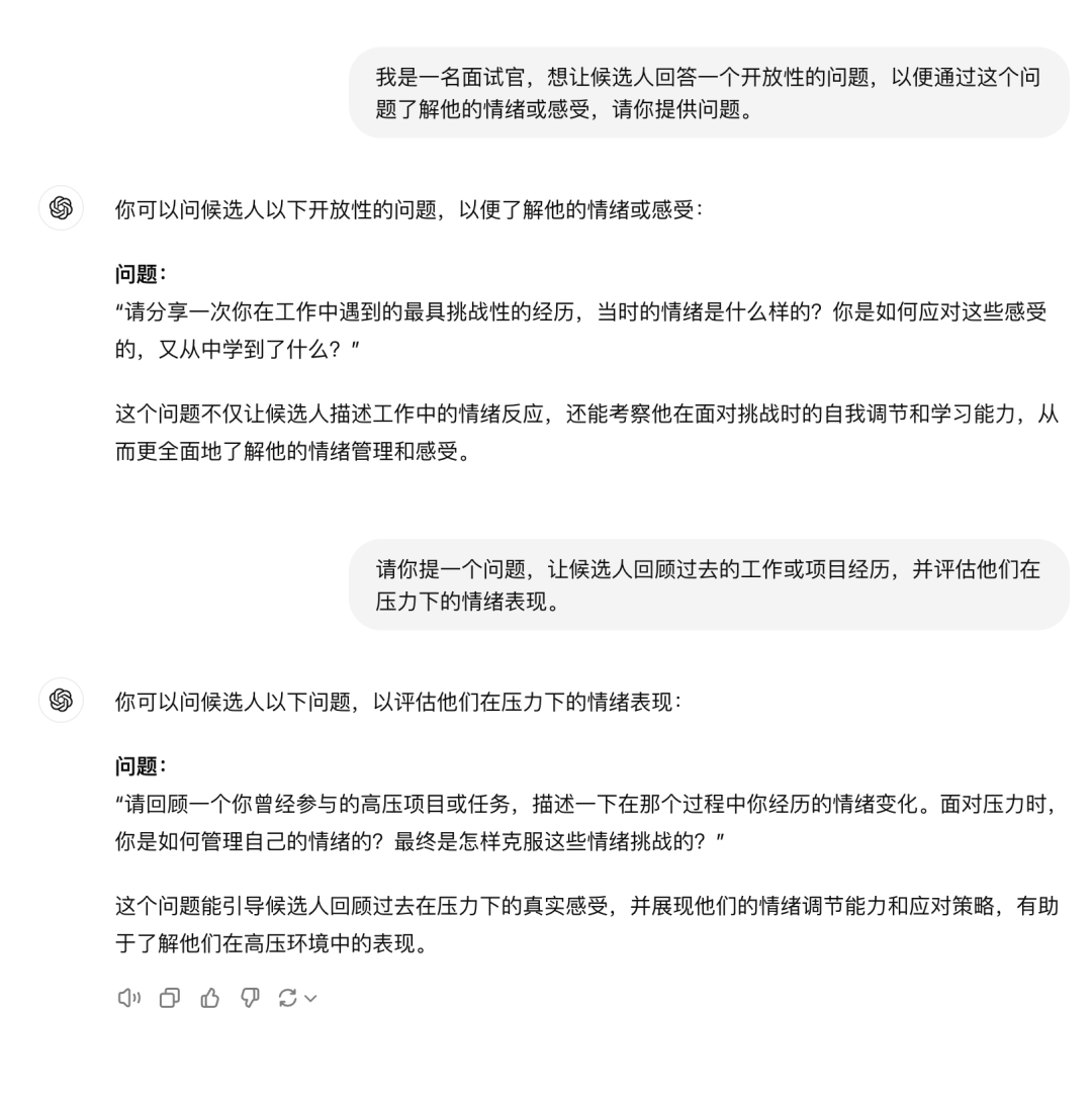 来聊聊第三个场景,在企业的招聘过程中,使用情绪分析提问,也可以帮助面试官更好地评估候选人的情绪管理能力、人际交往能力和情商。