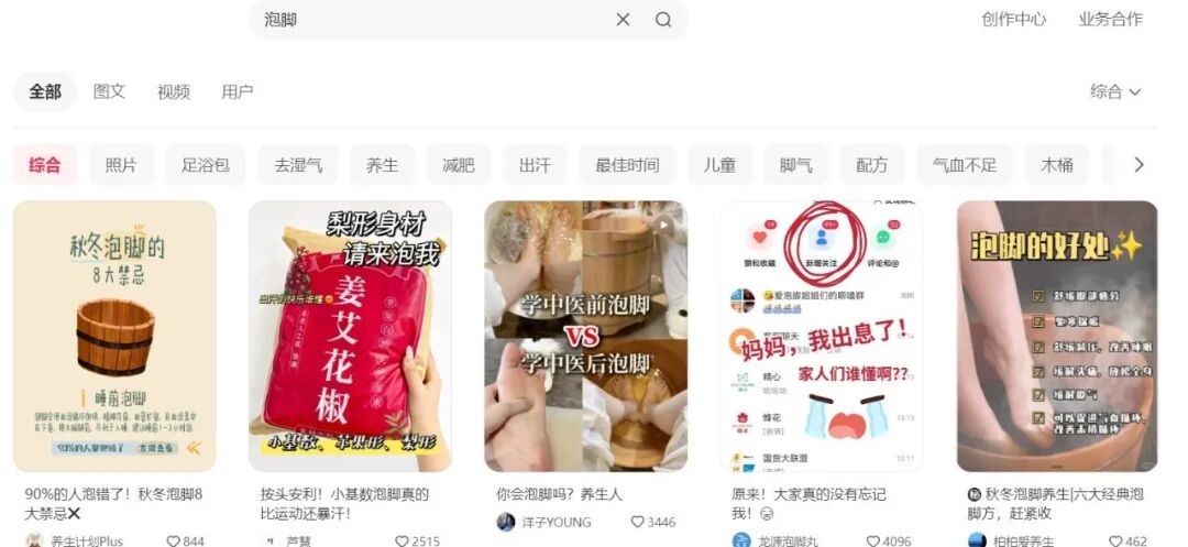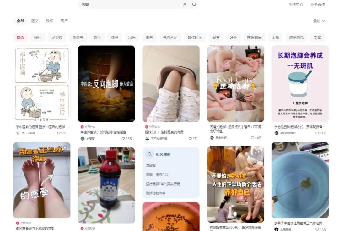 通过爆款笔记,了解大致的关键词,如:足浴凝珠、养生好物、健康养生。