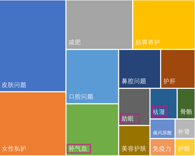 ①通过种草学网,了解大健康行业月报,中药泡脚可以从上面几个方面进行切入,比如补气血、助眠、祛湿这三个方面关键词进行结合。